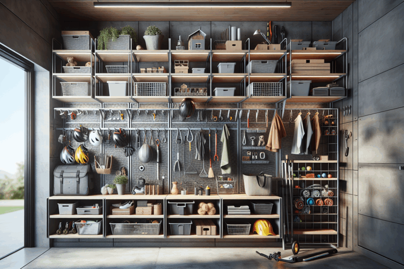 This versatile storage system is designed to cater to all your organizational needs, whether it’s for the garage, basement, or even other spaces in your home. Comprising a combination of a shelf, a large storage frame, wire baskets, and hooks, this storage solution is flexible and adaptable for various uses.