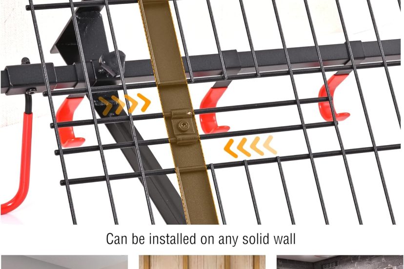 The overhead wall storage rack included in this product provides an additional storage option for items that are less frequently used. It’s an ideal spot to store bulkier items or seasonal gear, keeping them out of the way but still easily accessible when needed.