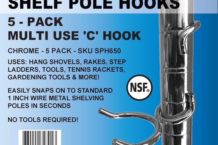 Looking for a simple yet effective solution to maximize your storage space? Look no further than the Shelf Pole Hooks 5-Pack! These Chrome Multi-Use C-Hooks are the best way to organize your garage shelving storage, whether it’s in your kitchen, laundry room, or basement. With easy installation and superior strength compared to S-hooks, these innovative pole hooks are designed to make your life easier. Hang everything from extension cords and air hoses to tools and toys. And with 100% satisfaction guaranteed, you can try out Pole Hooks risk-free for 30 days!